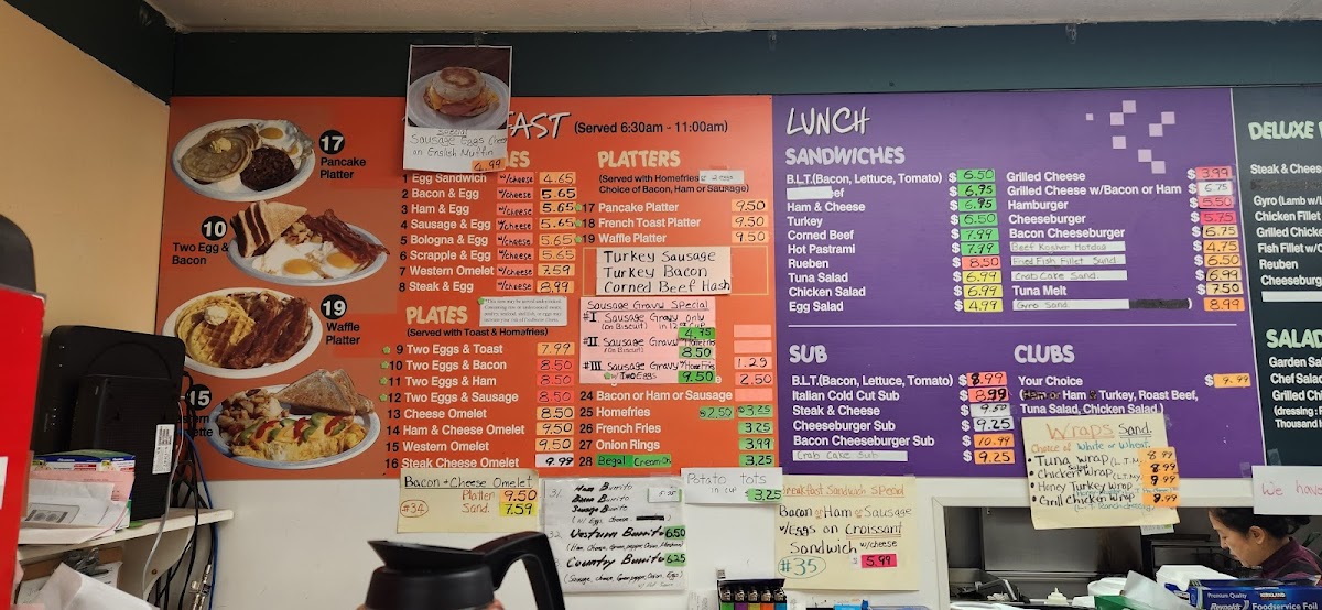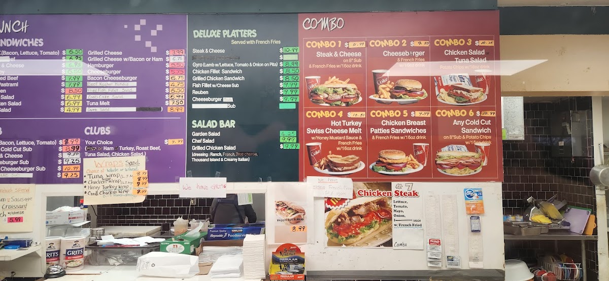 For lunch, you'll find a variety of deli-style subs, including cheesesteak favorites and crab cake sandwiches, each prepared fresh and served with crispy fries or onion rings. Light options like garden and grilled chicken salads are also available for those seeking something simpler but still flavorful.